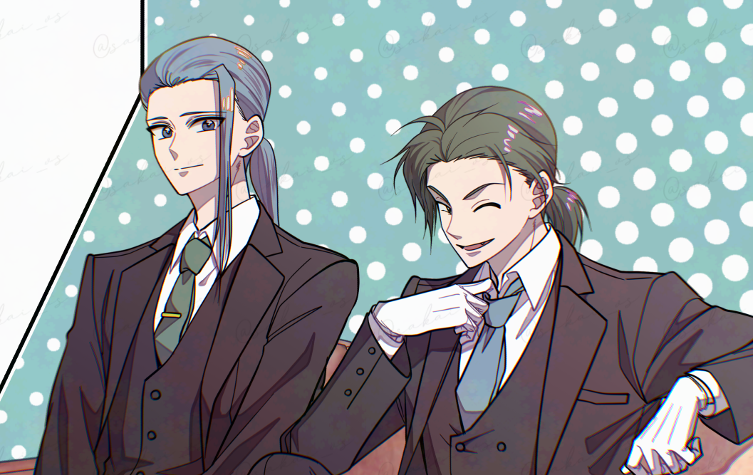 せめてものコンビ感を出すためにネクタイだけお互いの髪色っぽく、をこころがけました。
